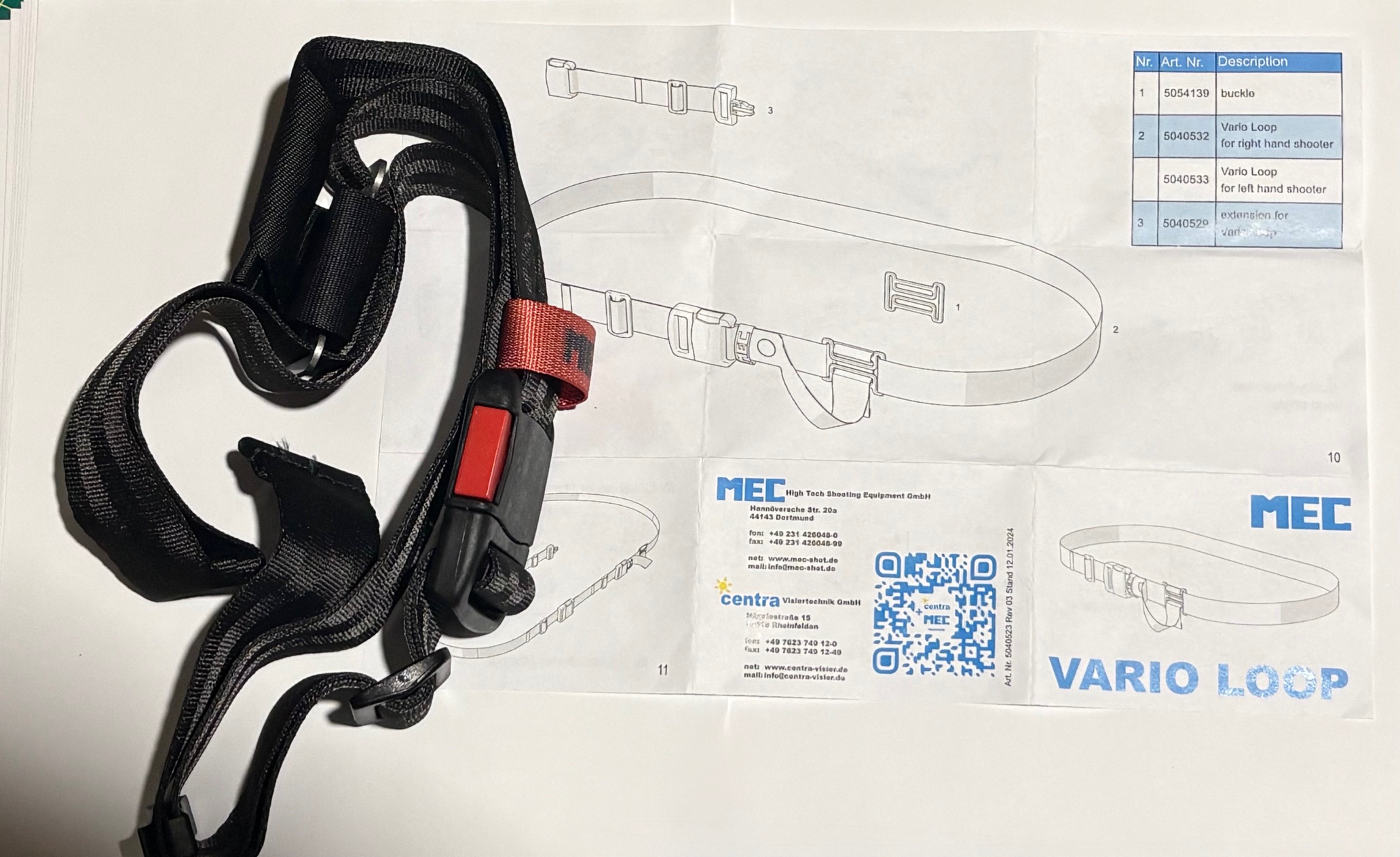 MEC Vario Loop, Variable shooting belt for pistol shooters incl. thumb loop RH